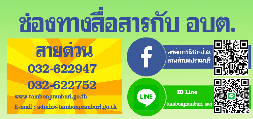 ลิขสิทธิ์ © 2562 องค์การบริหารส่วนตำบลปราณบุรี จังหวัดประจวบคีรีขันธ์ สงวนไว้ซึ่งสิทธิทั้งหมด.