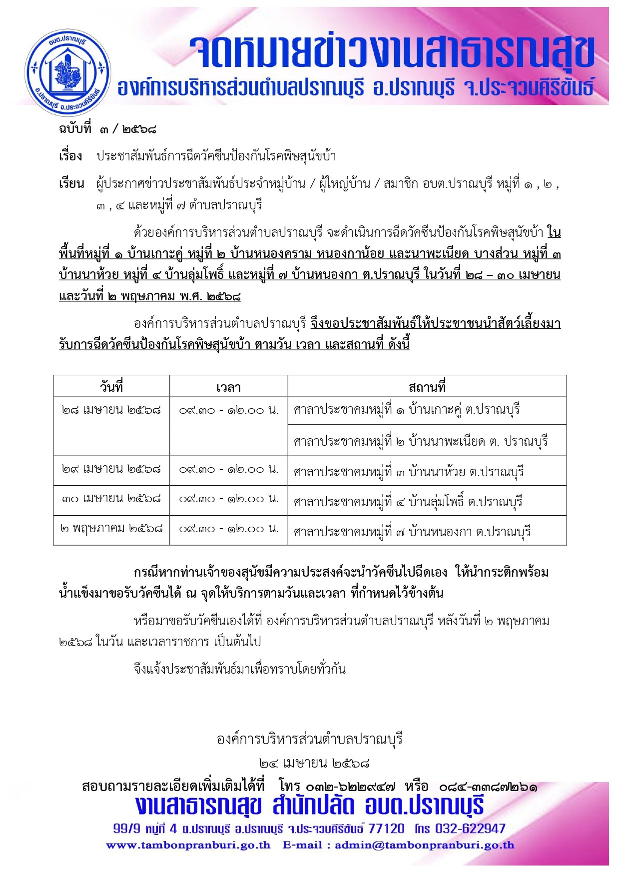 ประมวลภาพออกหน่วยให้บริการฉีดวัคซีนป้องกันโรคพิษสุนัขบ้า ประจำปีงบประมาณ พ.ศ. 2568